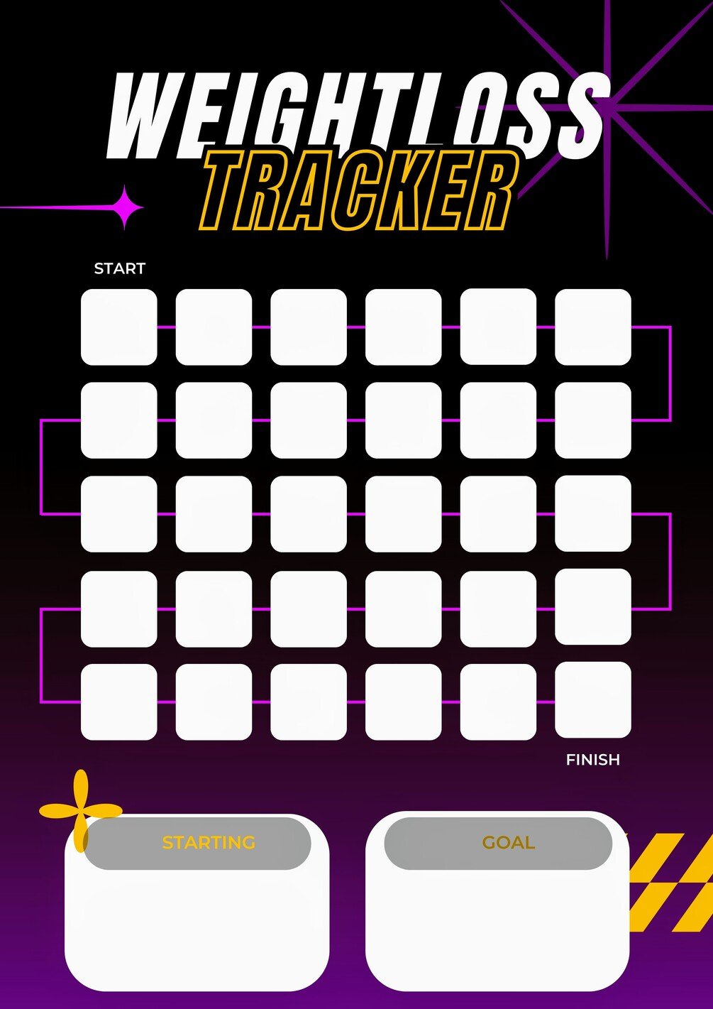 "A customizable weight tracker that helps you stay motivated and monitor your progress. Fill in the boxes every day and watch your results improve!